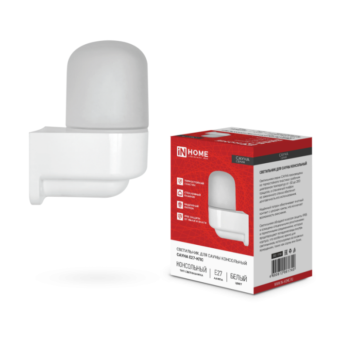 Светильник для сауны Е27-КПС(белый) P65-консольный для сауны(112х156мм) INHome